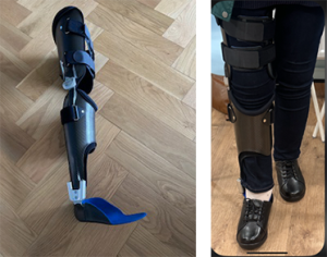 After a consultation and discussion with John Young, The Lead Orthotist for the Ledbrook Clinic, it was decided that the best treatment plan was for her to have a carbon fibre knee ankle foot orthosis (KAFO) with a lockable knee joint and a dorsi-flexion assist ankle joints to lift up her dropped foot.